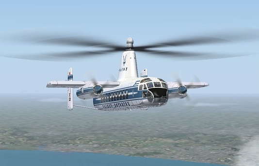 The Fairey Rotodyne was an aircraft developed from 1956 to 1962 by the UK aeronautics company Fairey, later merged with Westland. It was a compound gyroplane with propellers and a large main rotor which was operated by “tipjets” – small combustion engines at the extremities of the rotor which provided a jet thrust to move the rotor for take off and landing. The main rotor itself was otherwise unpowered and it would freewheel in flight, providing lift.